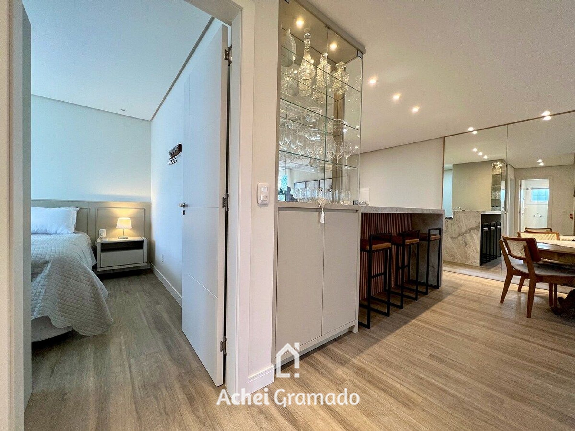 O apartamento está localizado 800m do Snowland e do Aquamotion, Parque Aquático de água termal, e apenas 7km ou 10 minutos do centrinho de Gramado, onde fica a Rua Coberta. Além de muito bem decorado e planejado, possui tudo que você precisa para o seu conforto e segurança. Nele você poderá contar com aquecimento de torneiras e chuveiros a gás, ar condicionado quente e frio em todos ambientes, Smart TV 50" na sala e 43"na suíte, internet Wi-Fi de 350mb por fibra ótica, 1 vaga de garagem privativa e black-out nas janelas dos dormitórios! Na cozinha ficam à disposição jogo completo de panelas, talheres e utensílios, churrasqueira interna, fogão, forno, microondas, torradeira, cafeteira de cápsulas e adicionado cafeteira elétrica também! Logo em frente ao lado do bloco um belo espaço de área verde, com áreas de sombra, deck com mobiliário externo para aproveitar e contemplar o pôr do sol no vale. Seja muito bem vindo ao seu refúgio em Gramado!