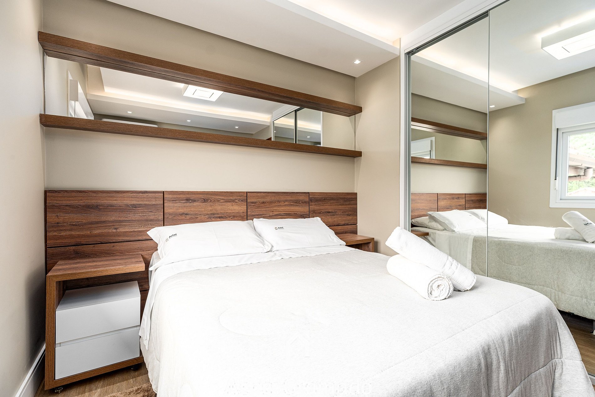 • Suíte 2: cama casal padrão + 1 auxiliar de solteiro (abre ao lado da cama);