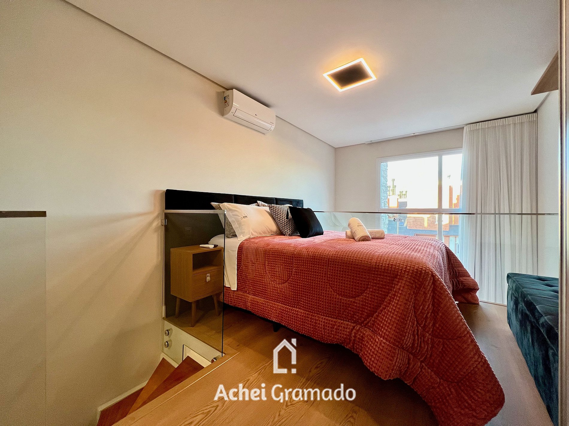 Este maravilhoso loft super completo fica na melhor localização, na avenida principal de Canela, opção de cafeteria e restaurantes no entorno do prédio, e apenas 350m da Rua Coberta de Canela! Possui ar condicionado quente e frio em todos ambientes, Smart TV de 55" na sala, e persianas blackout. Por estar no centro, você poderá fazer muitas coisas a pé, tendo a comodidade de deixar o carro no estacionamento e contemplar tudo que Canela tem para oferecer!