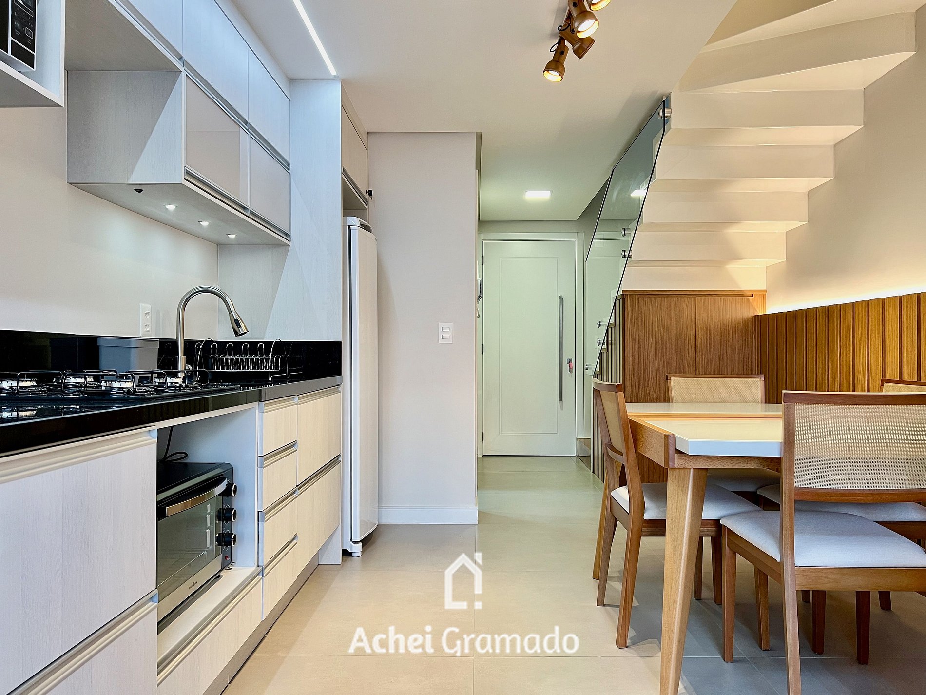 Se trata de um apartamento loft inteiro que acomoda até 4 pessoas, com 45m2, uma suíte no andar superior e lavabo no térreo, internet Wi-Fi por fibra óptica, Smart TV na sala e quarto, cozinha completamente equipada com cooktop, microondas, liquidificador, torradeira, cafeteira e os mais variados utensílios, sala de estar com varanda e churrasqueira. O local ainda conta com chuveiros e torneiras com aquecimento a gás, sofá-cama na sala, e no dormitório cama de casal queen. O imóvel ainda disponibiliza vaga de garagem coberta, privativa no mesmo prédio do apartamento.