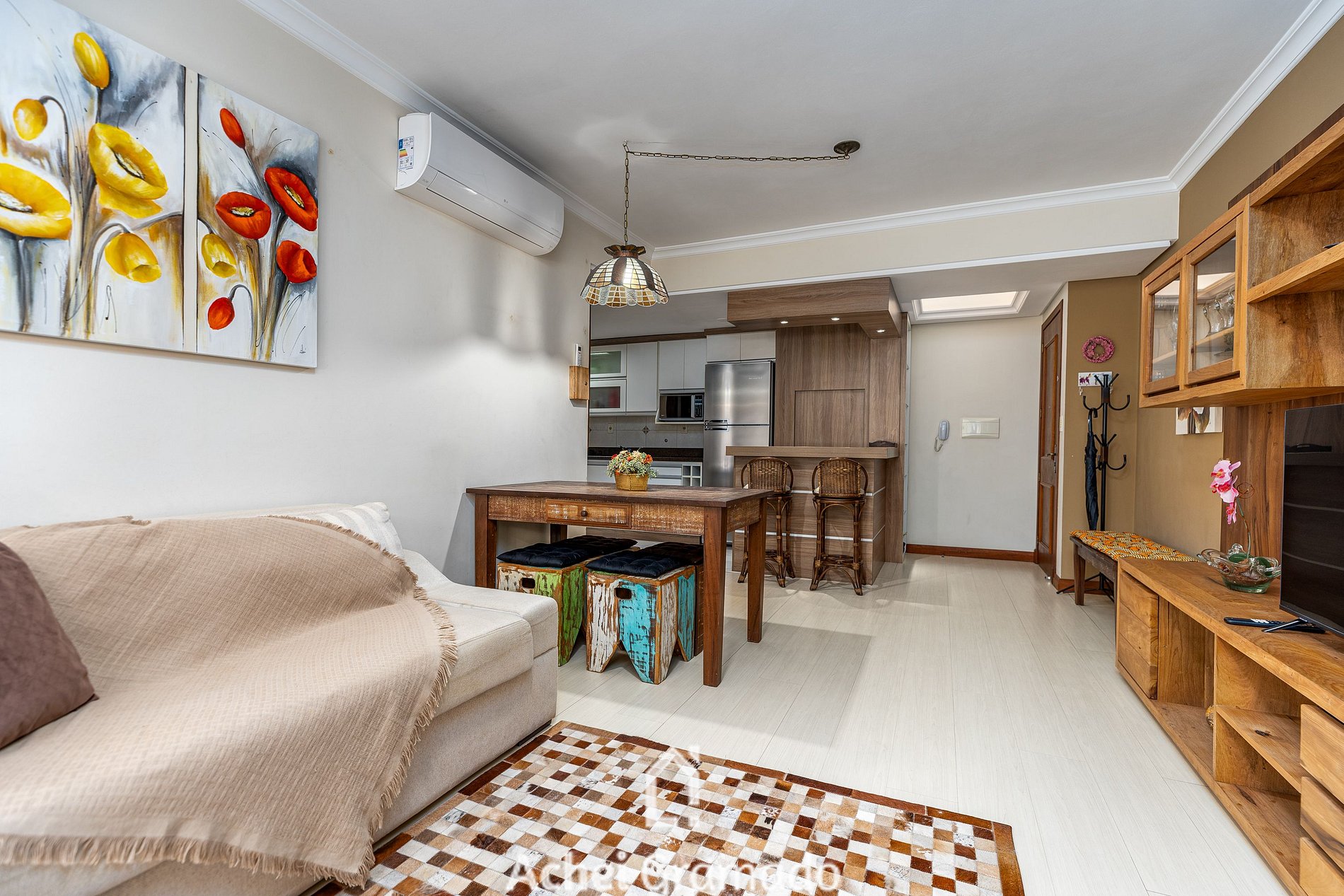 Este belíssimo apartamento está no coração de Gramado, a apenas 7 quadras da Rua Coberta. Finamente mobiliado, oferece 90m² de conforto e sofisticação! Recentemente foi todo climatizado com ar-cond quente e frio na sala e quartos. Conta ainda com churrasqueira interna, lareira, Smart TV na sala, máquina de lavar e vaga de garagem coberta. Sua localização privilegiada permite explorar a cidade a pé, deixando o carro na garagem e aproveitando tudo o que Gramado tem de melhor com tranquilidade.