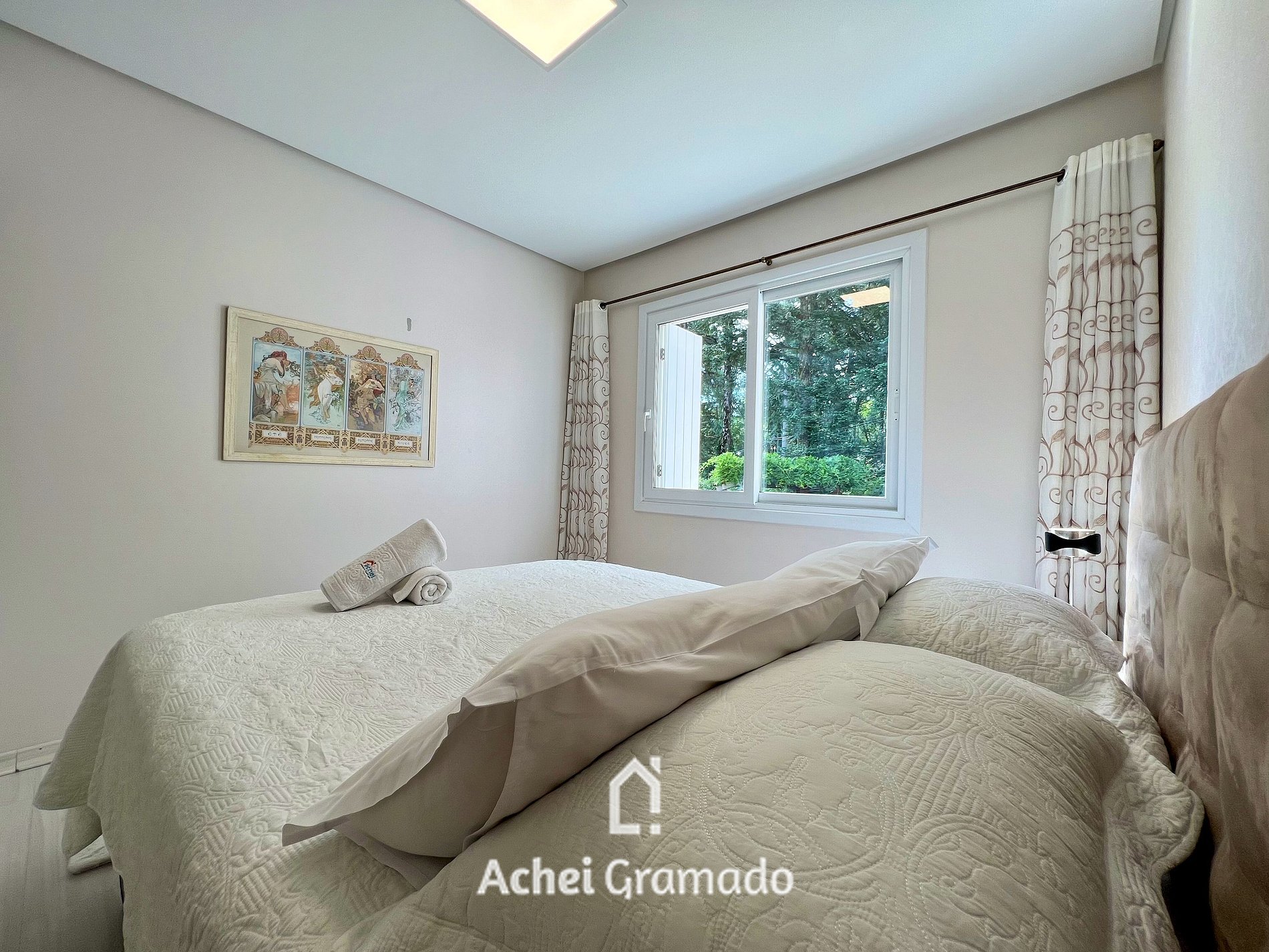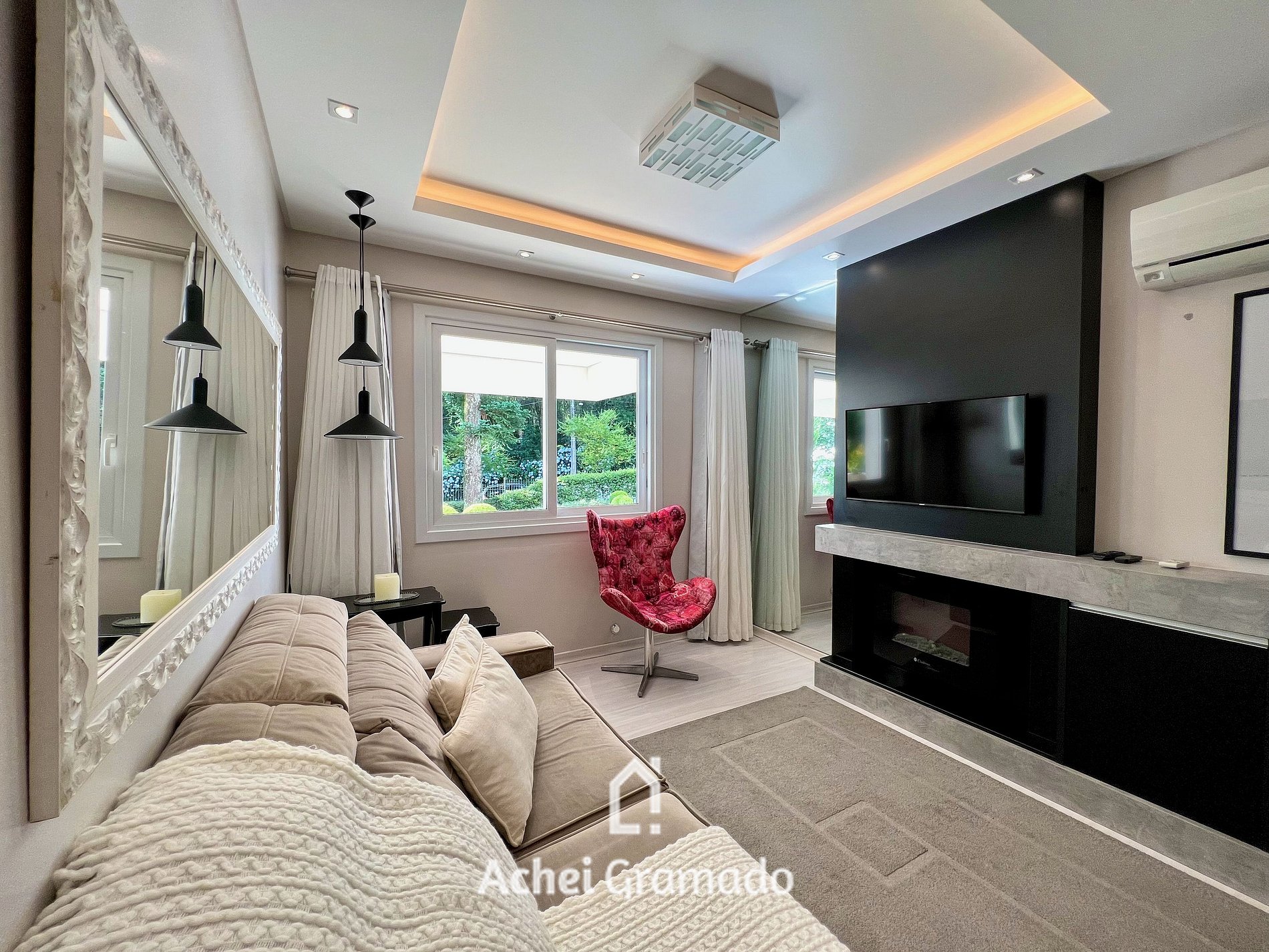Este maravilhoso apartamento de alto padrão oferece 100m2, amplas janelas com vista para o jardim do condomínio. Exclusiva localização, a 300m da Rua Coberta! São 2 dormitórios super completos, sofá cama, ar condicionado quente e frio em todos ambientes, lareira e Smart TV de 47" na sala. Por ser localizado no centro, você poderá fazer muitas coisas a pé, tendo a comodidade de deixar o carro no estacionamento e contemplar tudo que Gramado tem para oferecer!