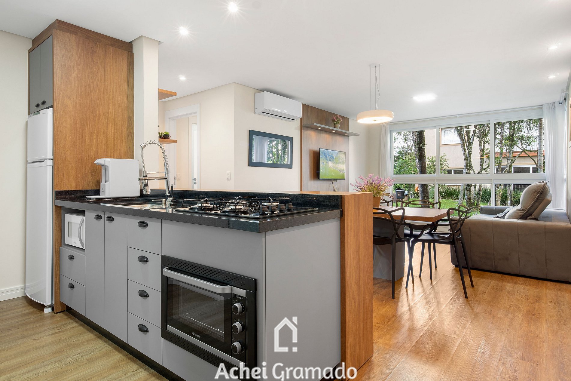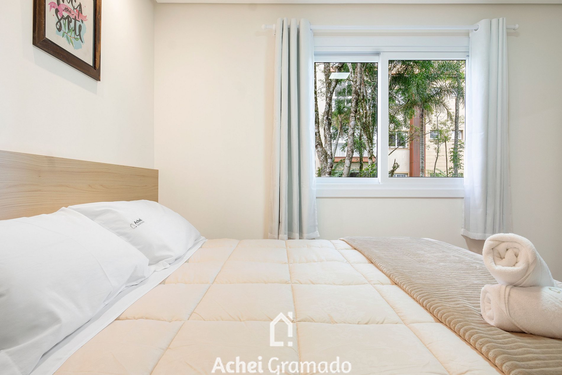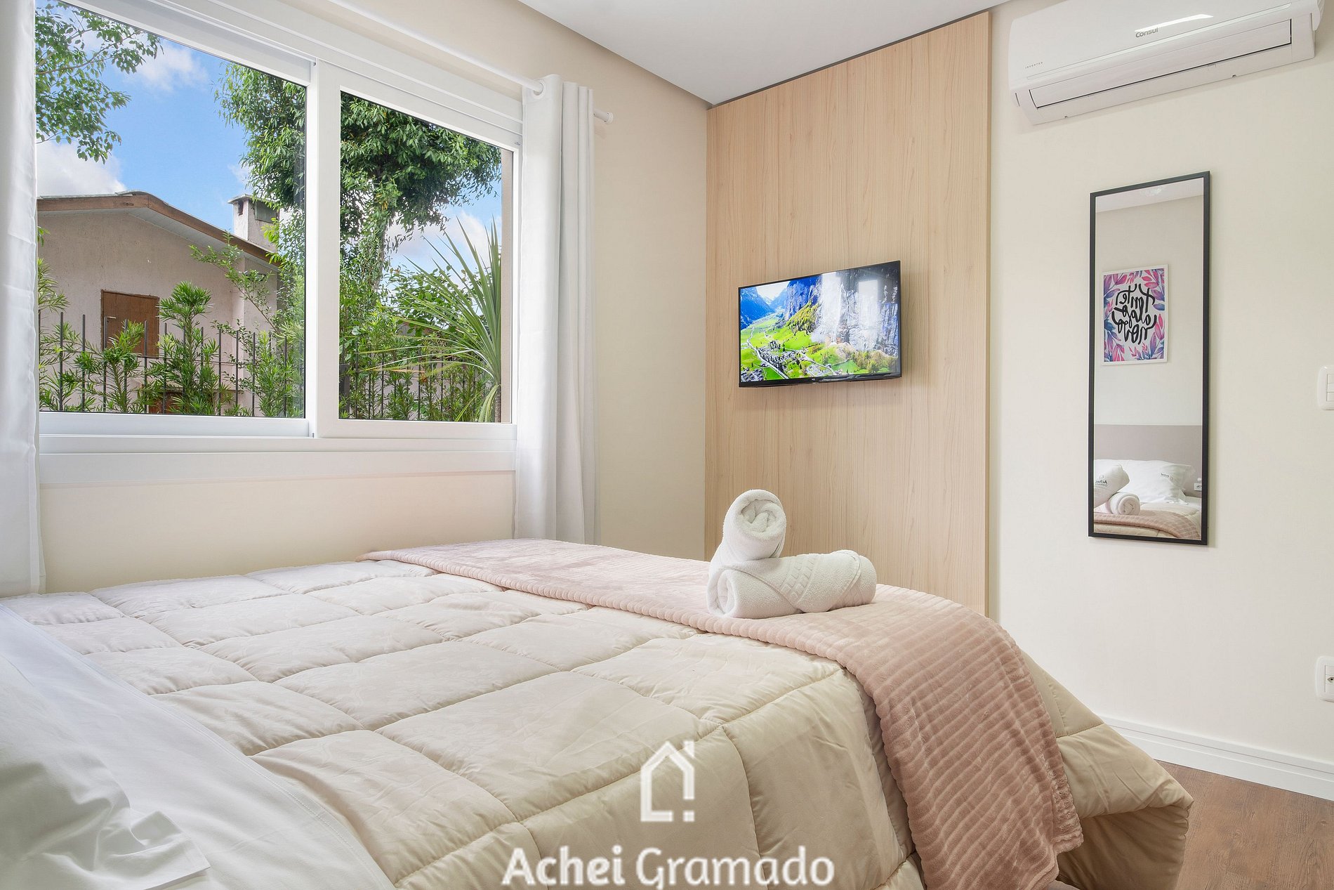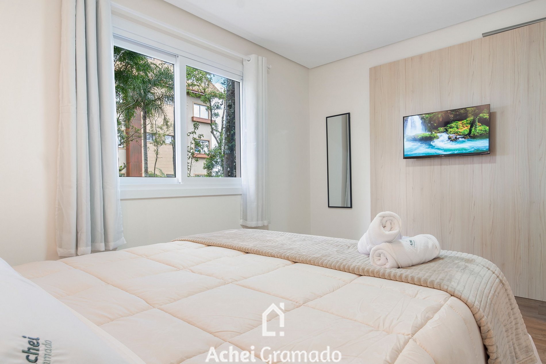 Este apartamento super completo oferece 74m2, dois dormitórios e capacidade para até 7 pessoas, além de uma bela integração com o jardim do condomínio com amplas janelas na sala de estar. Cozinha completa, máquina de lavar, Smart TV de 42" na sala de estar e nos quartos. Além disso, o condomínio oferece academia, espaço home-office e sala kids, amplo gramado e deck para contemplação, o espaço perfeito para desfrutar um piquenique ou café da manhã com amigos e família!
