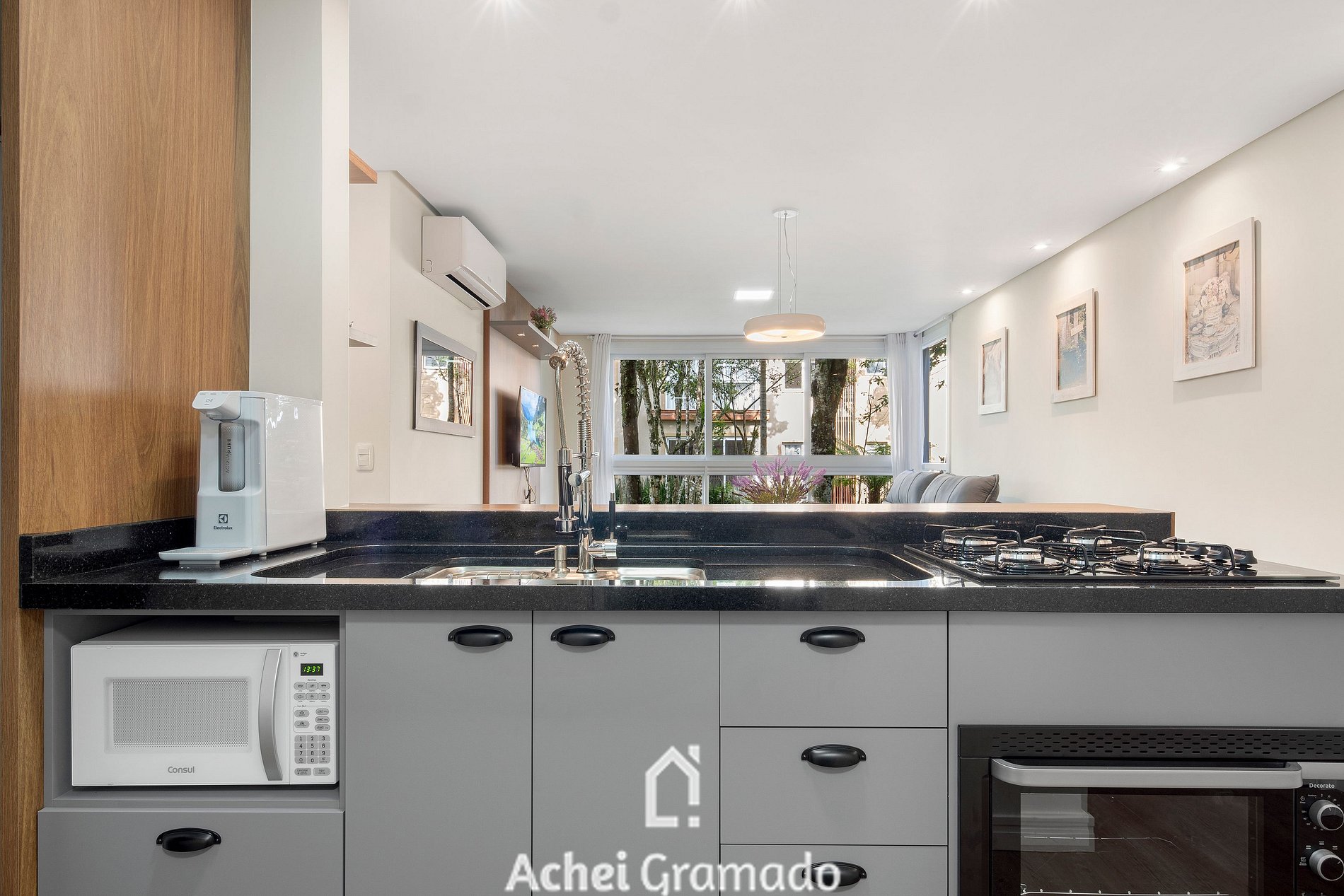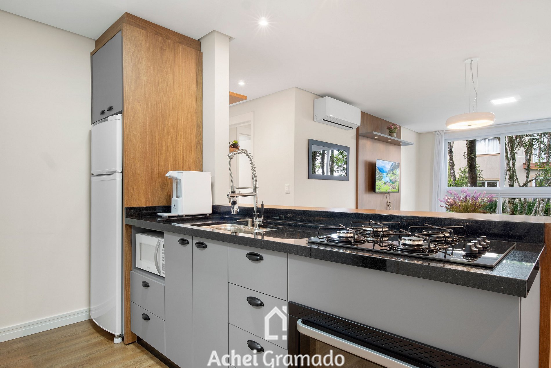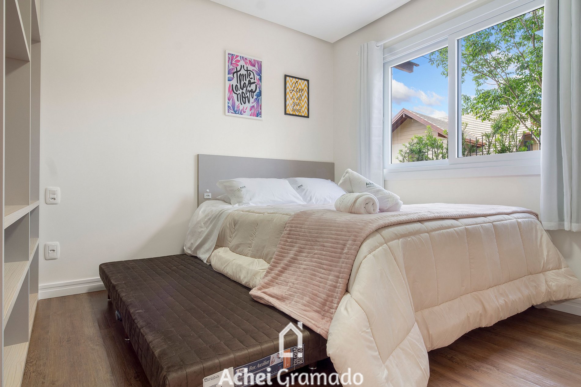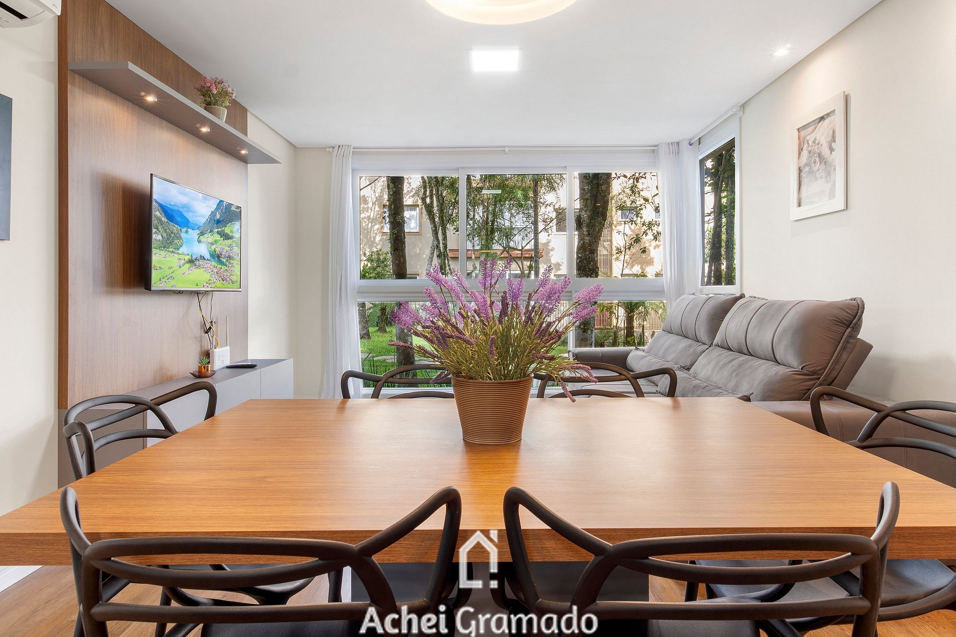 Este apartamento super completo oferece 74m2, dois dormitórios e capacidade para até 7 pessoas, além de uma bela integração com o jardim do condomínio com amplas janelas na sala de estar. Cozinha completa, máquina de lavar, Smart TV de 42" na sala de estar e nos quartos. Além disso, o condomínio oferece academia, espaço home-office e sala kids, amplo gramado e deck para contemplação, o espaço perfeito para desfrutar um piquenique ou café da manhã com amigos e família!