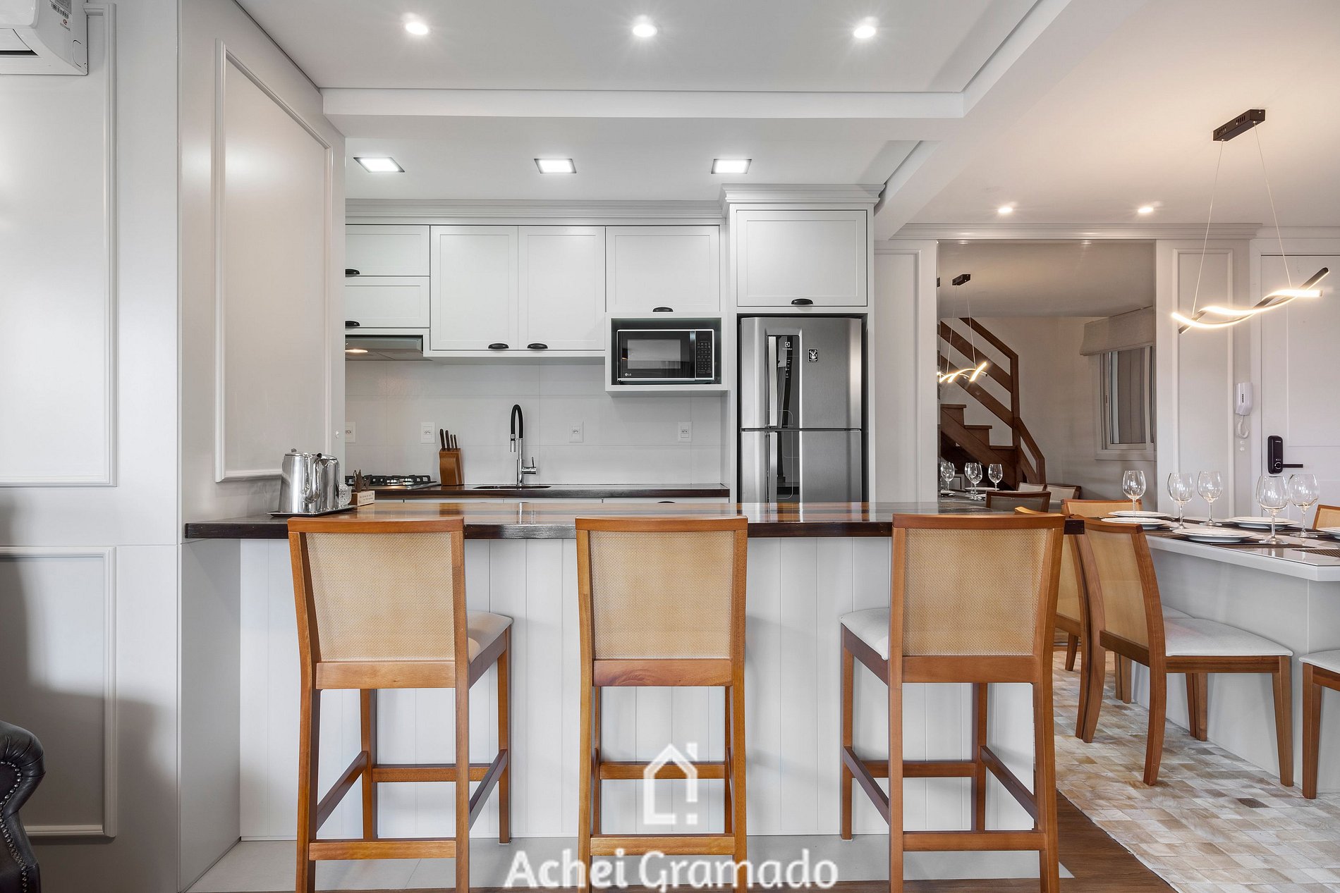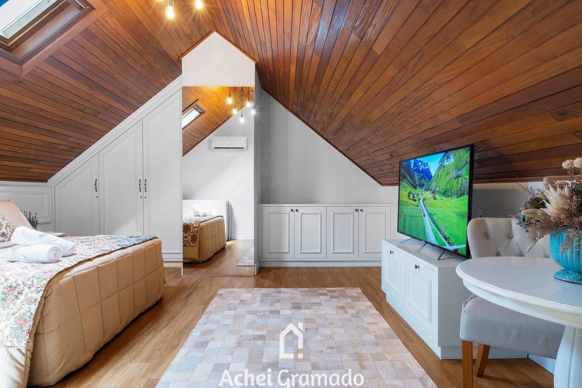 Este maravilhoso duplex de alto padrão possui 2 suítes, uma delas com banheira de imersão e 95m2 de muito conforto, vaga de garagem dupla e um belo pôr do sol da janela da sala. Smart TV na sala de estar e quartos, além de ar condicionado quente/frio em todos ambientes. Além disso, o imóvel está localizado apenas 900 metros do Mini Mundo, um dos pontos turísticos mais legais de Gramado! Você poderá aproveitar um dos bairros mais charmosos e arborizados de Gramado para relaxar e fazer caminhadas!