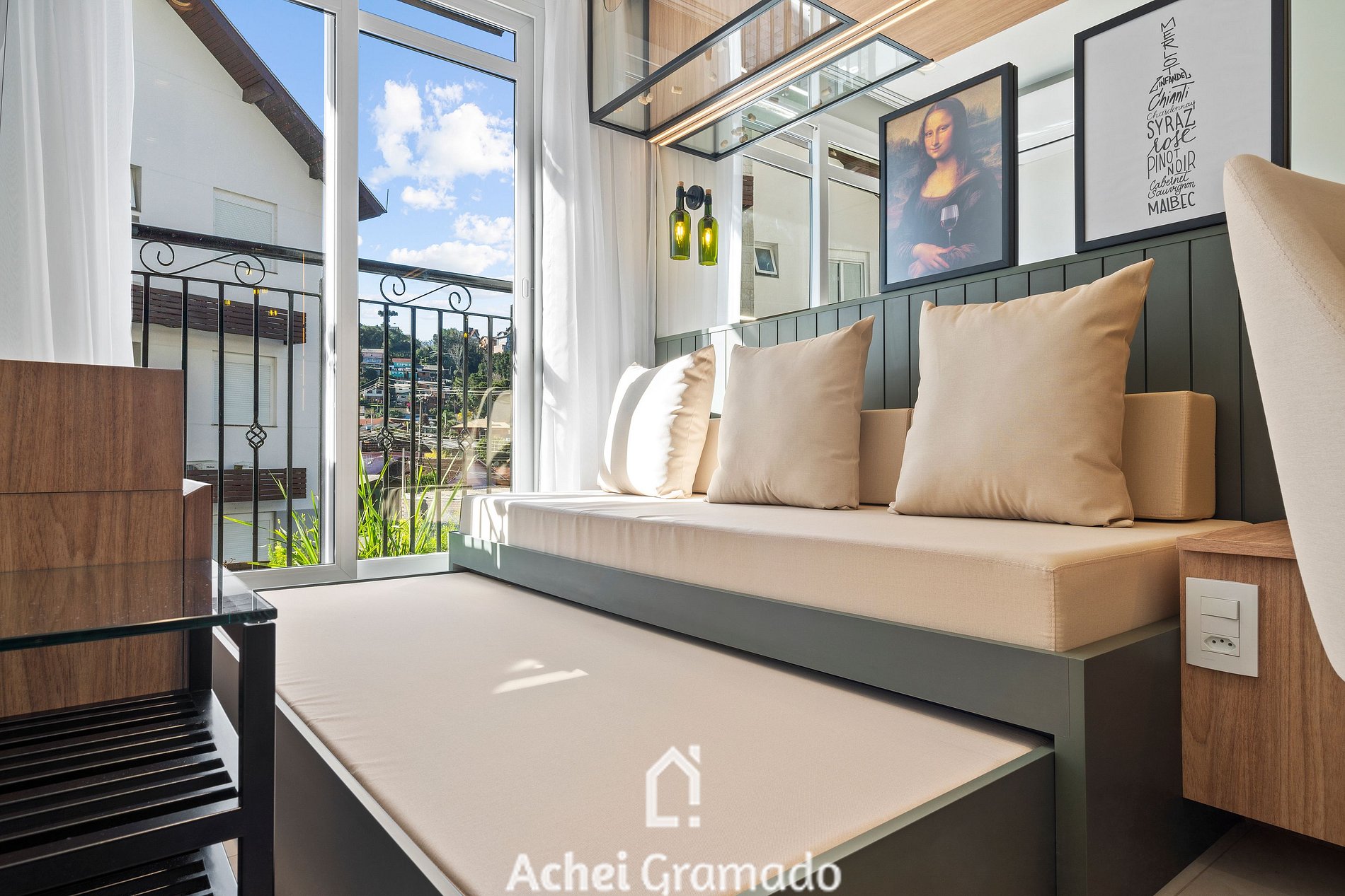 O apartamento Viña del Aire é além de oferecer uma experiência tem muito conforto! Acomoda até 5 pessoas, 3 em cama de casal + auxiliar de solteiro, e duas no sofá cama da sala, com camas individuais de solteiro. Cozinha integrada e equipada com fogão de indução, forno, microondas, geladeira, cafeteira e torradeira. O condomínio conta com playground para as crianças, garagem coberta e fica próximo ao centrinho de Gramado, sendo 1300m da Rua Coberta e mercadinho à 1 quadra do residencial.