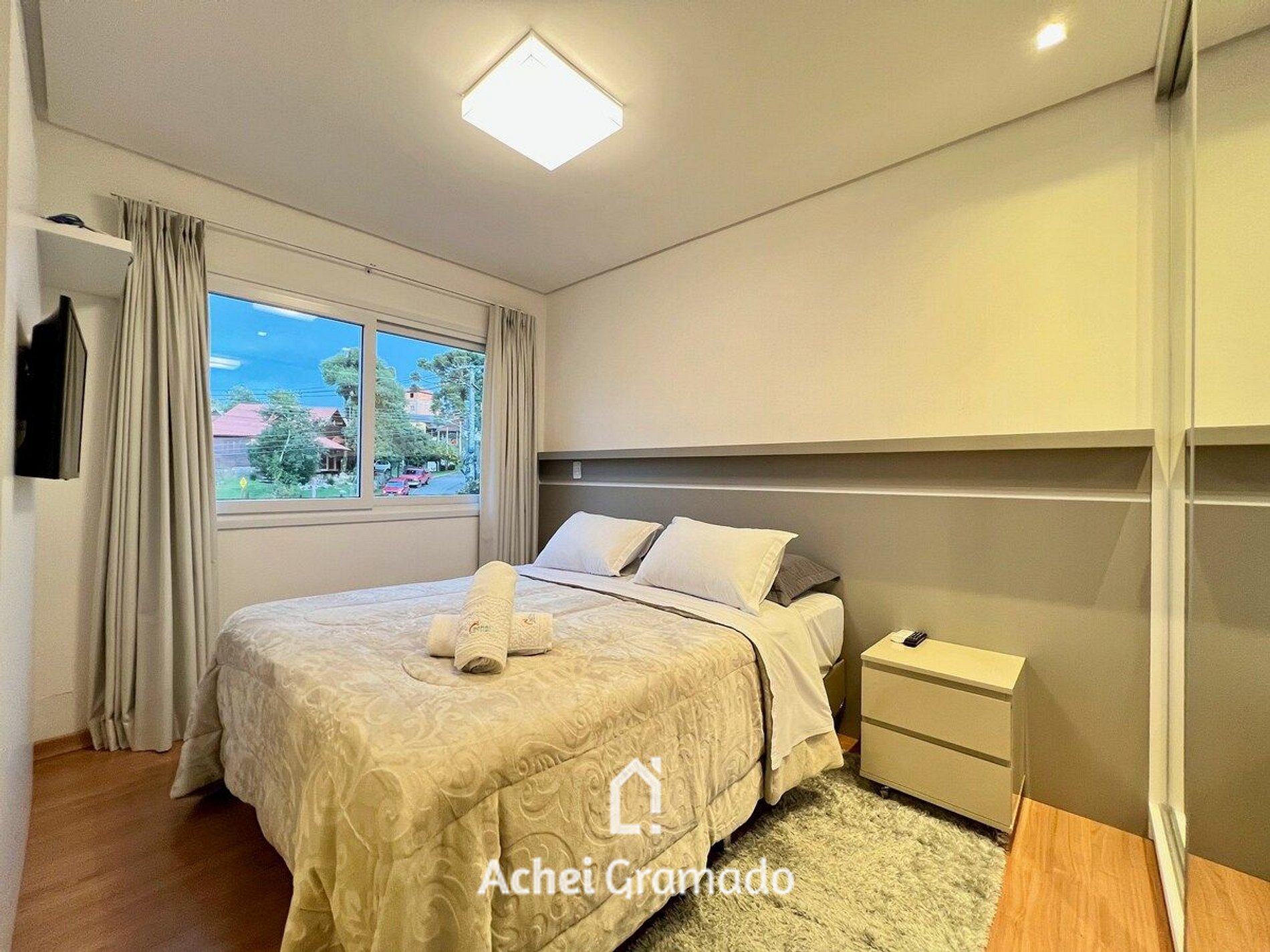 Este apartamento, muito bem decorado, fica localizado muito perto do Centro de Gramado, com diversos museus, mercados, cafés e restaurantes próximos. Possui também acabamento de alto padrão, oferece conforto em duas suítes, cozinha equipada, churrasqueira e garagem coberta. As duas suítes do apartamento acomodam confortavelmente até 4 pessoas, em uma cama de casal queen e mais duas de solteiro. O local perfeito e completo para desfrutar Gramado com conforto e tranquilidade!