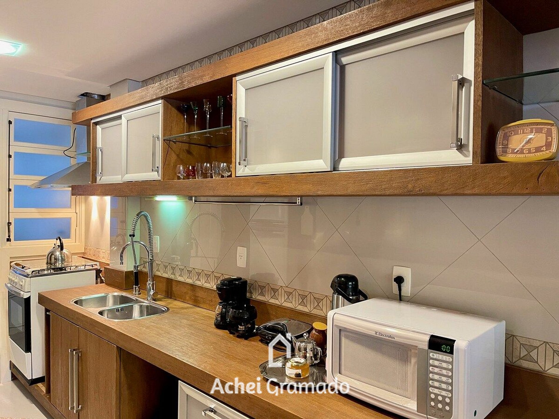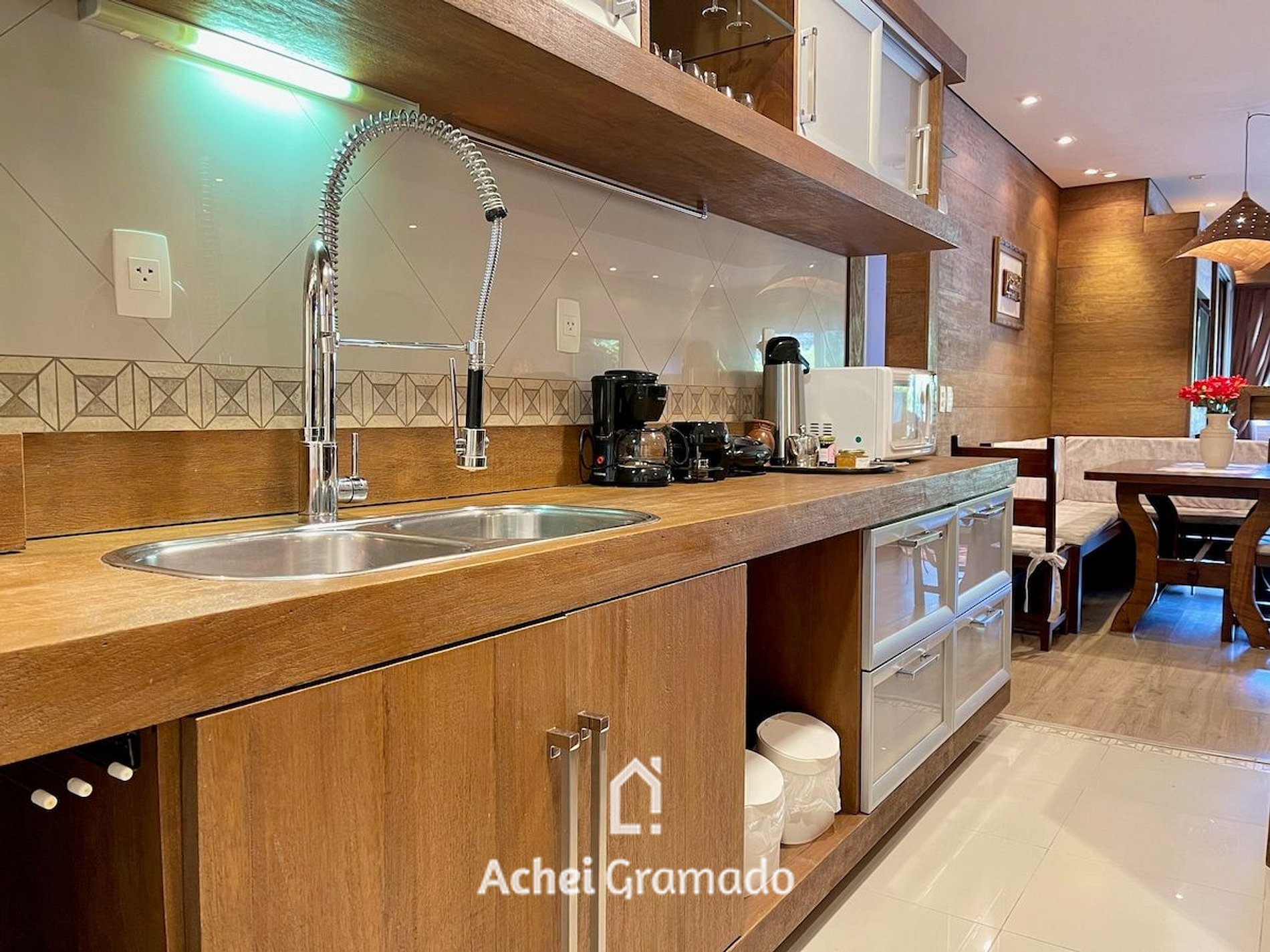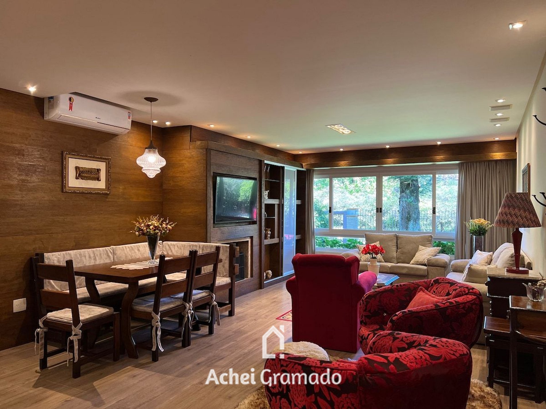O local foi completamente reformulado, com pintura nova, Smart TV de 55” na sala de estar e TV em todos os dormitórios, além de copos, taças e os mais variados utensílios de cozinha. Internet por fibra óptica de 40mb, máquina lava & seca, churrasqueira elétrica, ar condicionado quente e frio EM TODOS AMBIENTES e aquecimento a gás em todos chuveiros e torneiras. Logo ao entrar temos uma ampla sala de estar integrada à cozinha, com lareira e janela panorâmica para a frente do imóvel, bastante arborizado! A cozinha tem tudo que você precisa para preparar um ótimo café da manhã ou refeições, de acordo com a capacidade do local. Tenha certeza que você terá tudo que é necessário para aproveitar seu passeio em Gramado, sejam muito bem vindos!