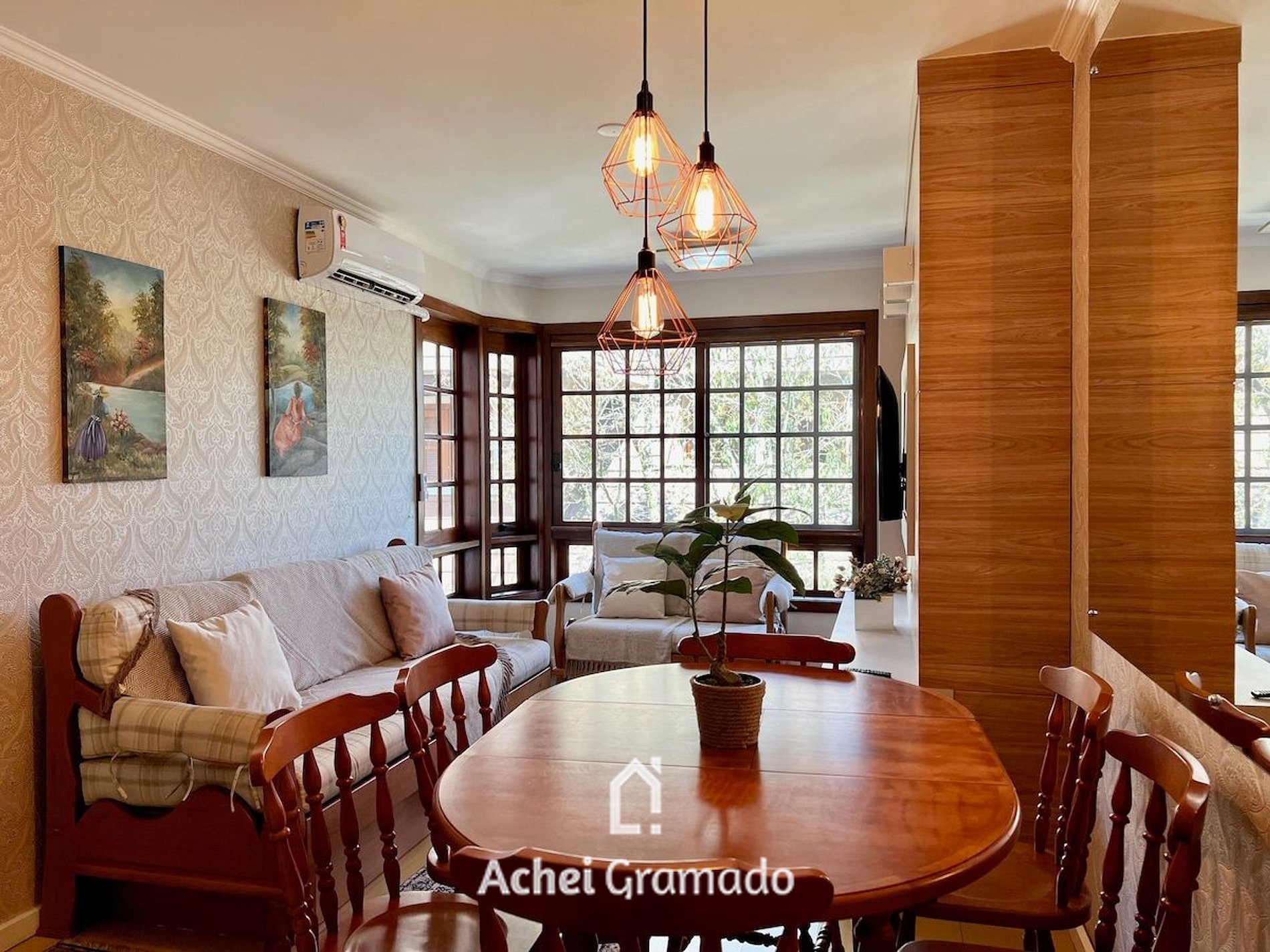 Esta belíssimo apartamento duplex fica no centro de Gramado, apenas 100m da ExpoGramado e 1300m da Rua Coberta. Além de muito completo, oferece amplo espaço: 120m2 em 3 dormitórios, ar condicionado quente e frio em todos ambientes, um quarto térreo, e dois no segundo andar, além de uma vaga de garagem privativa. Neste apartamento você poderá fazer muitas coisas a pé, tendo a comodidade de deixar o carro no estacionamento e contemplar com tranquilidade tudo que Gramado tem para oferecer!