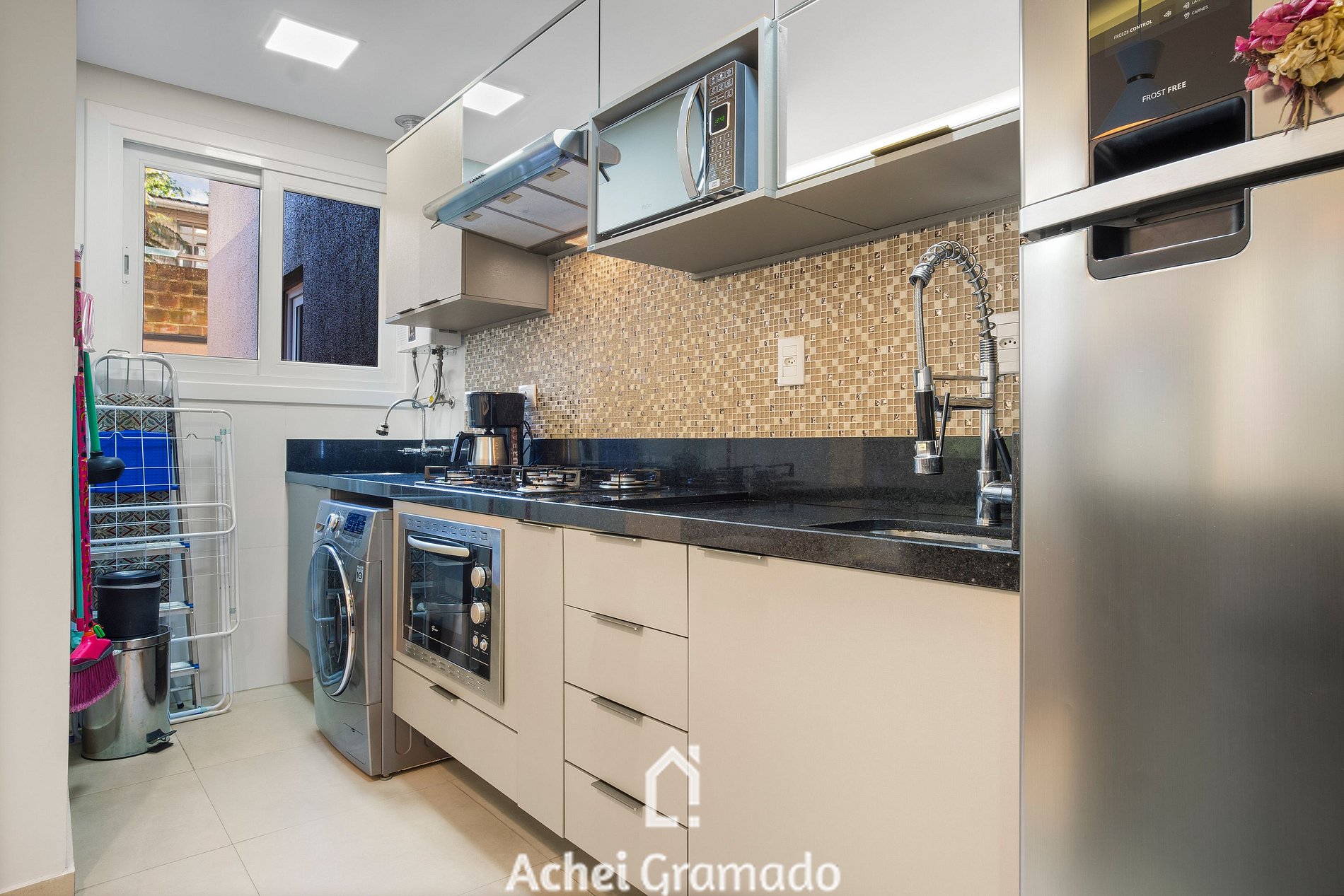 Se trata de um apartamento inteiro, com 85m2, dois quartos, sendo uma suíte, internet Wi-Fi por fibra óptica, Smart TV na sala e nos quartos, máquina lava & seca, cozinha completamente equipada com cooktop, forno, microondas, liquidificador, torradeira, cafeteira e os mais variados utensílios e eletrodomésticos, sala de estar e jantar. O local ainda conta com chuveiros e torneiras com aquecimento a gás.