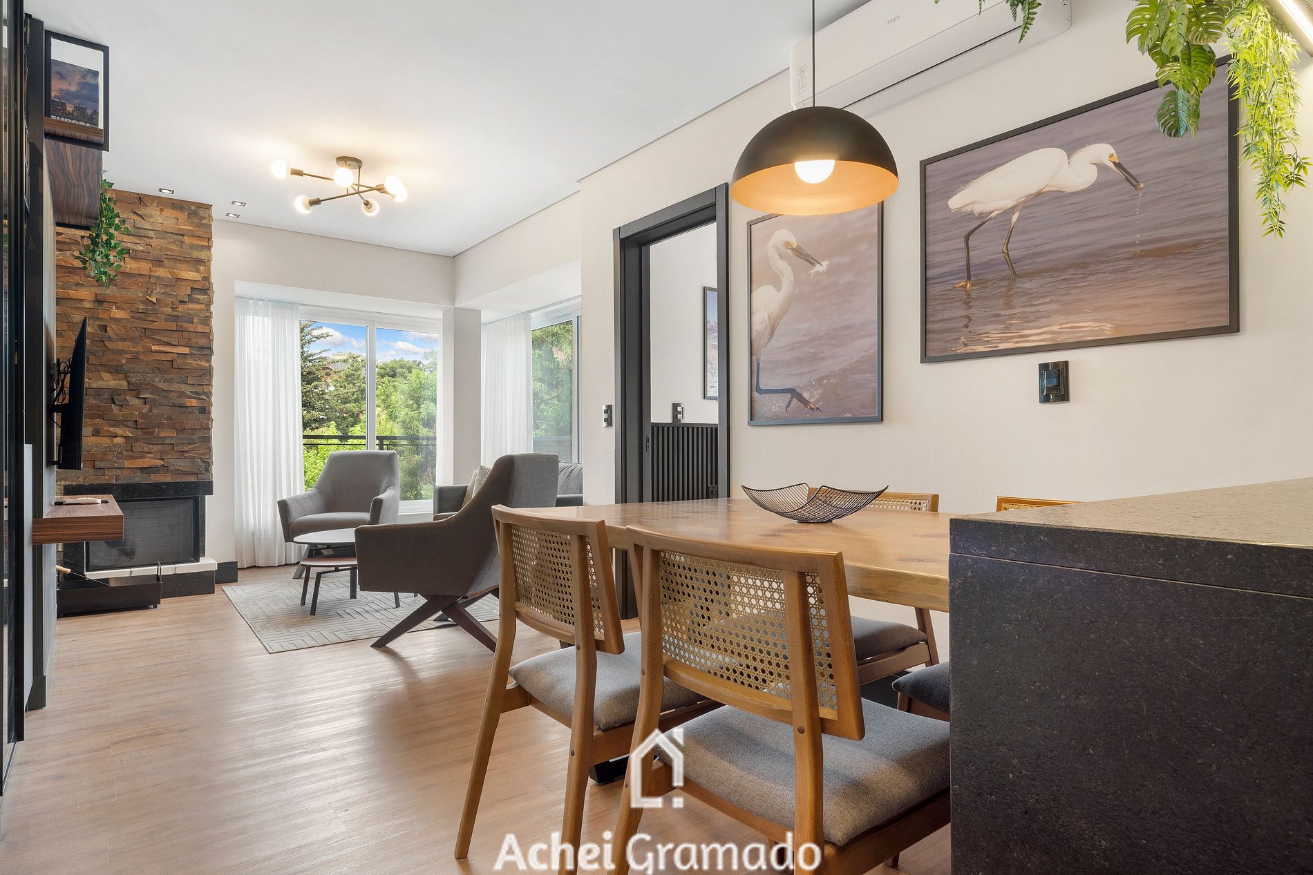 Um empreendimento magnífico no coração de Gramado, inspirado nos bairros industriais de Nova York o "Tribeca" fica a 350m do Palácio dos Festivais e RUA COBERTA! Além de muito bem equipado acomoda até 6 pessoas em 2 suítes, ar condicionado quente/frio em todos ambientes, churrasqueira, além de vaga de garagem coberta e privativa. Certamente um imóvel único, extremamente completo e com tudo que a sua família precisa para desfrutar de Gramado no conforto!