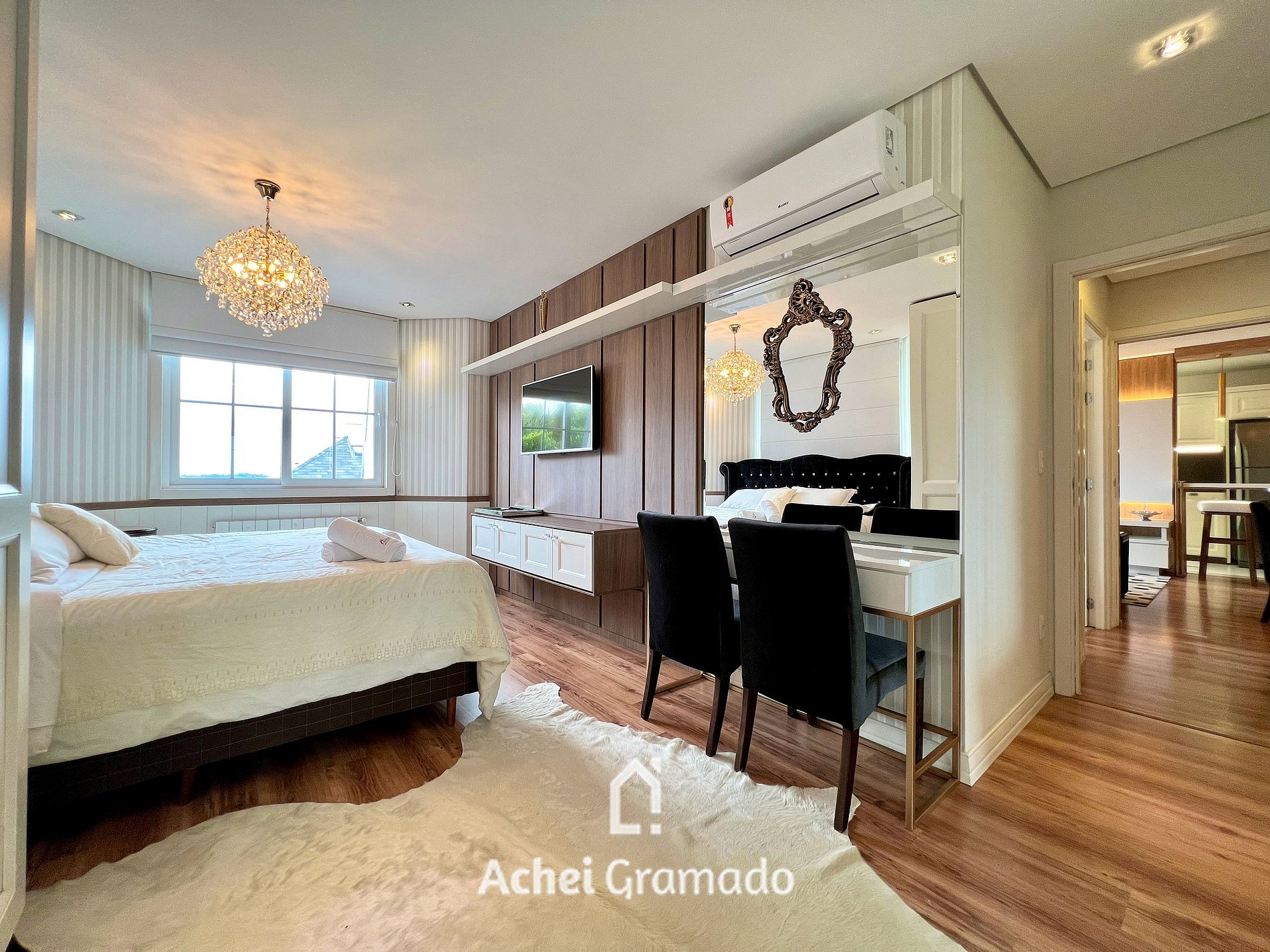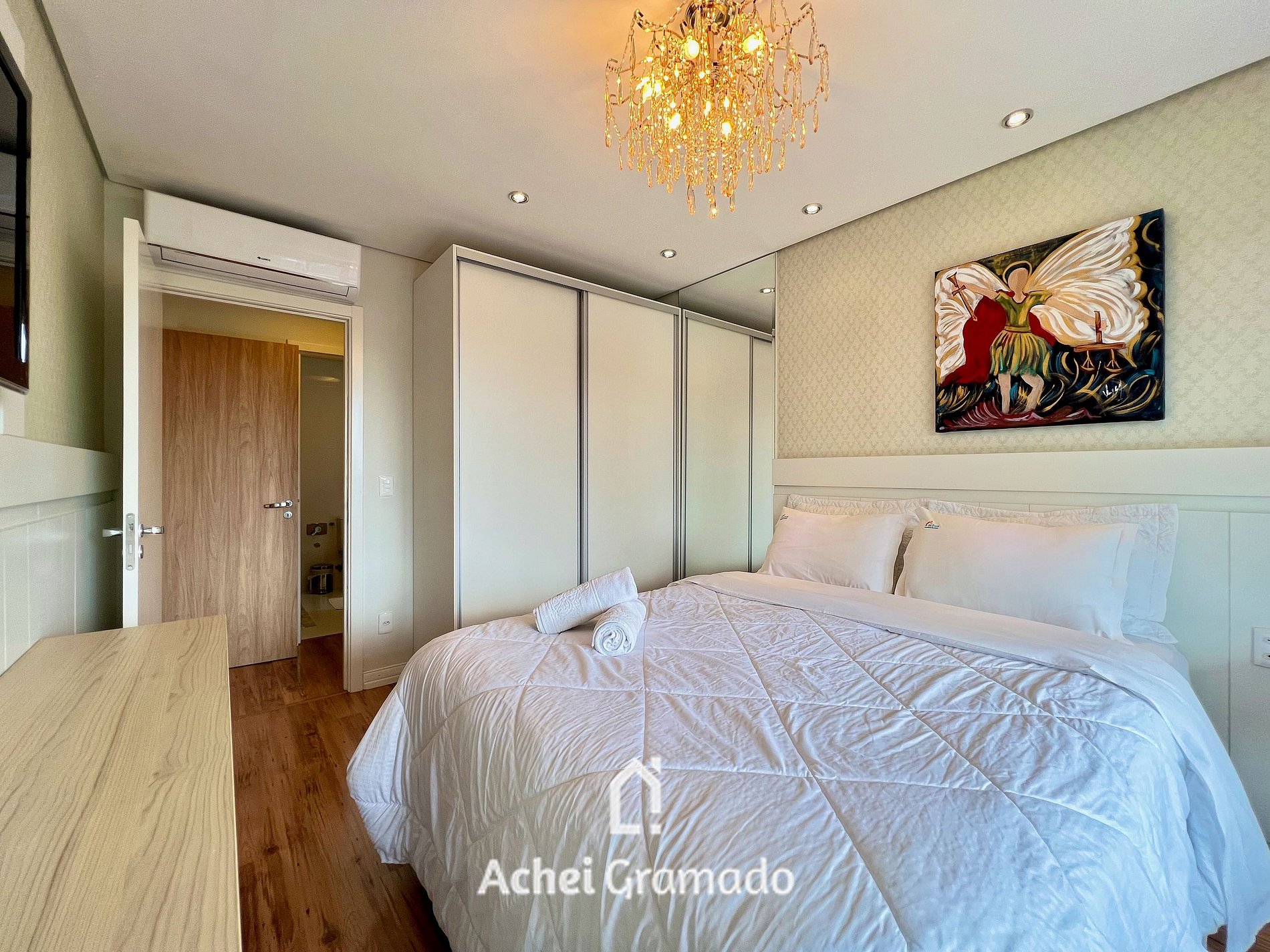 Este apartamento impecável, fica localizado no Centro de Gramado, apenas 400 metros da Rua Coberta, próximo a farmácia, cafés e restaurantes. Possui ar condicionado quente e frio em todos ambientes, dois dormitórios completamente equipados, sendo um deles suíte. Por estar no centro, você poderá fazer muitas coisas a pé, tendo a comodidade de deixar o carro no estacionamento e contemplar com tranquilidade tudo que Gramado tem para oferecer!