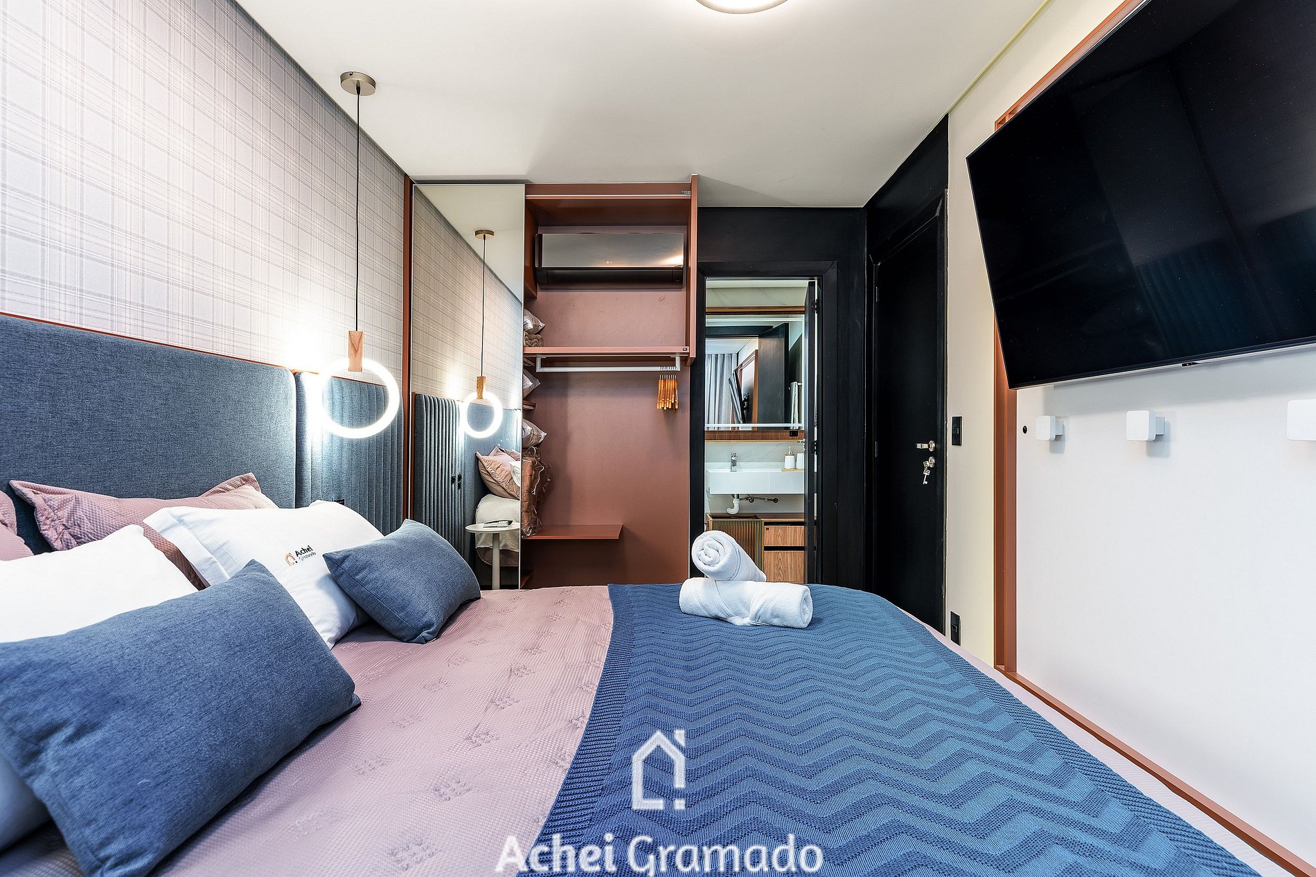 Este apartamento acomoda até 5 pessoas, sendo duas em uma cama queen c/ auxiliar de solteiro na suíte e outras duas no sofá-cama da sala. Com 40m², oferece Wi-Fi fibra óptica, Smart TVs na sala e no quarto, cozinha equipada com cafeteira, torradeira e mais. O aquecimento a gás está disponível nos chuveiros e torneiras. Possui varanda integrada à sala e quarto, e garagem coberta privativa no prédio, proporcionando conforto e praticidade para sua estadia.