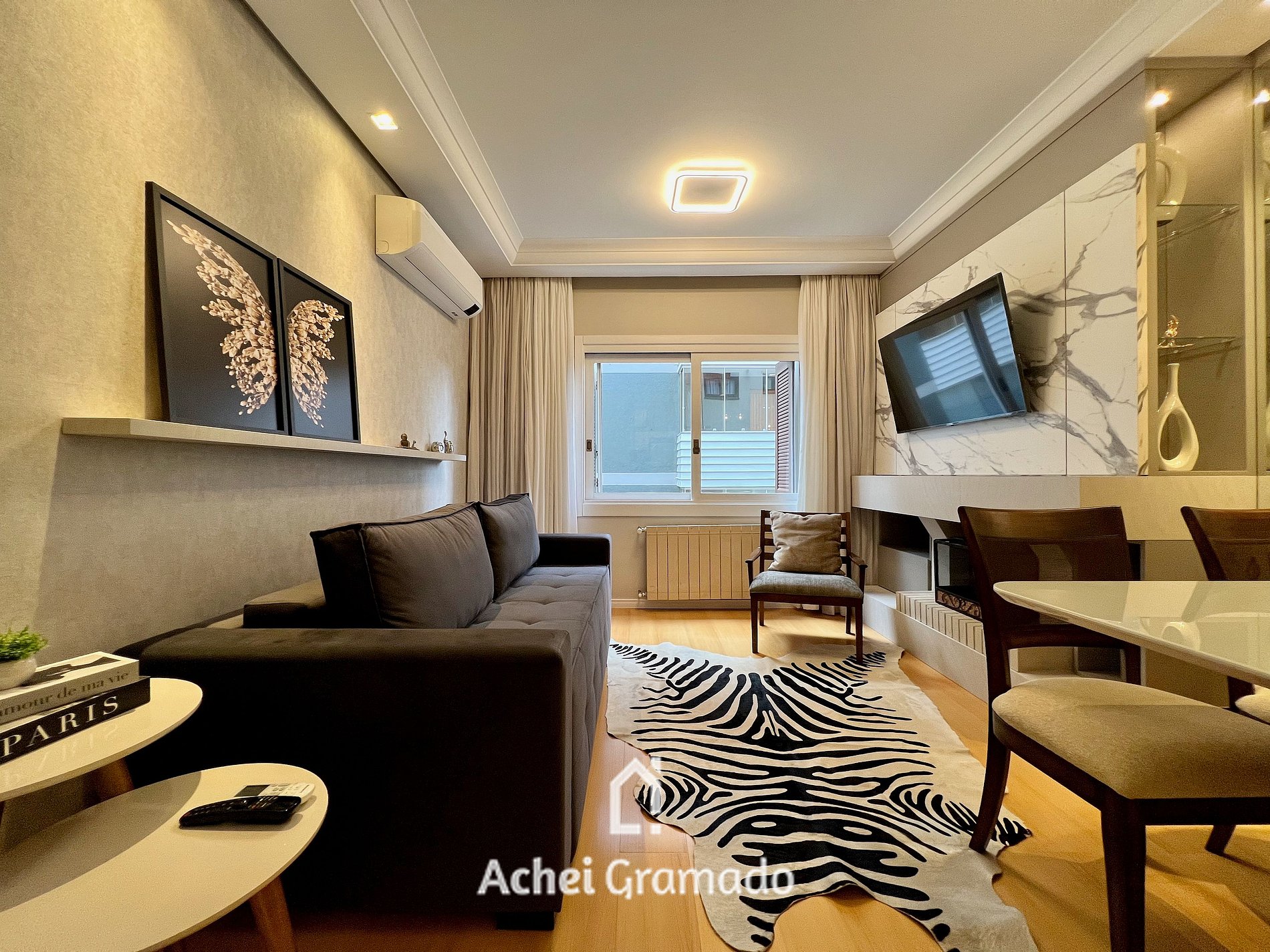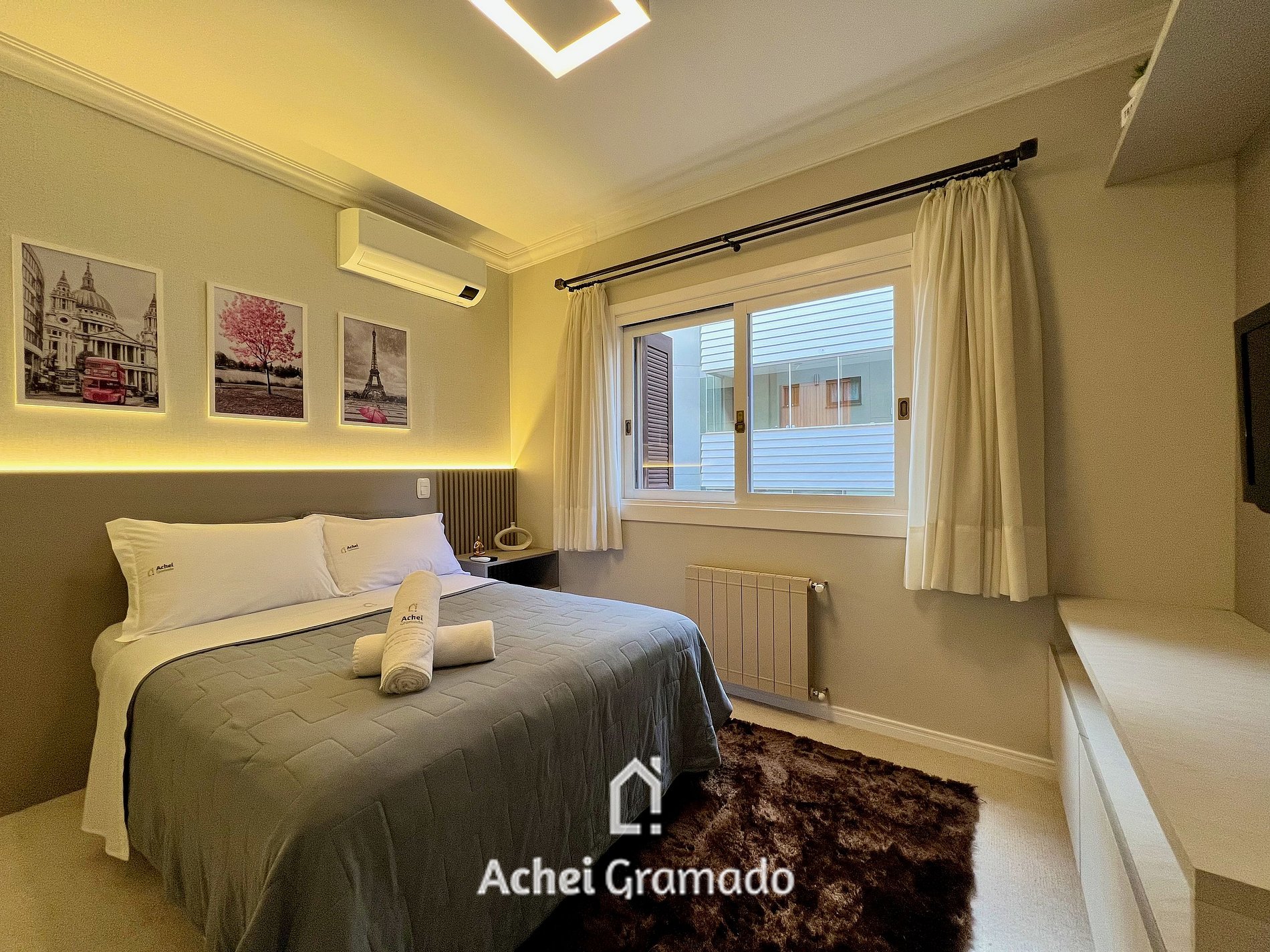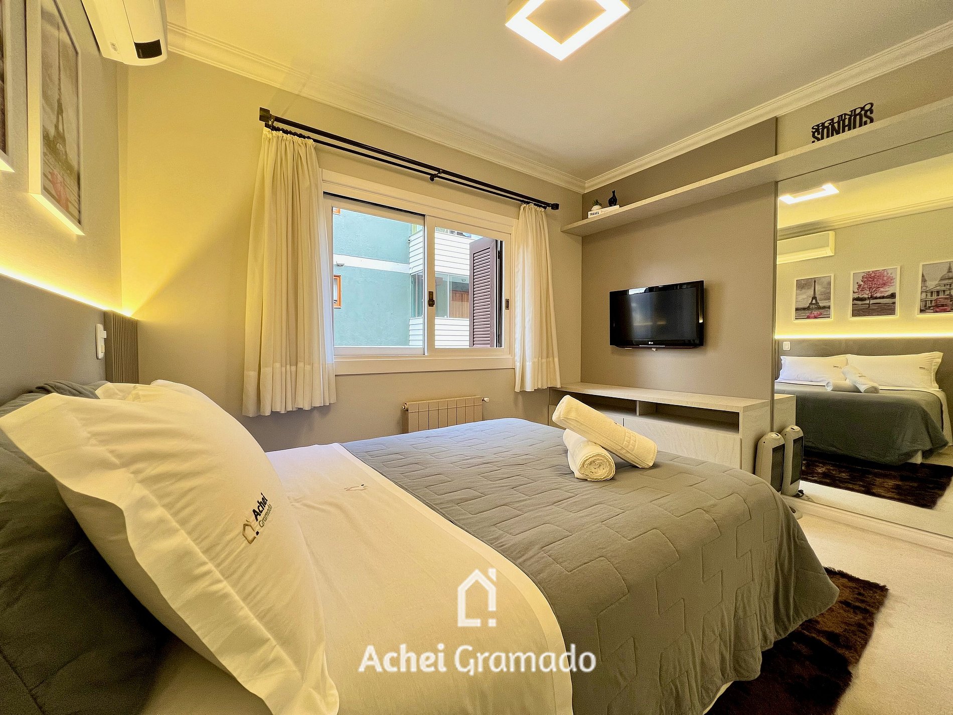 Este amplo apartamento fica no coração de Gramado, apenas 400 METROS da Rua Coberta. Além de bem equipado oferece muito aconchego com lareira, ar condicionado quente/frio em todos ambientes, Smart TV, e vaga de garagem privativa. Por ser localizado no centro, você poderá fazer muitas coisas a pé, tendo a comodidade de deixar o carro no estacionamento e contemplar com tranquilidade tudo que Gramado tem para oferecer!
