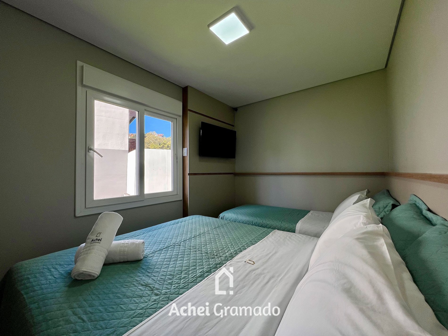 Este apartamento super completo acomoda confortavelmente até 10 pessoas. São 2 suítes com uma cama de casal queen e mais uma de solteiro, e terceira suíte uma casal padrão + uma auxiliar de solteiro embutida no box, além de mais uma no sofá na sala. Possui cozinha completa, com churrasqueira, cafeteira, jarra elétrica e torradeira. O condomínio conta com playground, 2 vagas de garagem coberta e fica próximo ao centrinho de Gramado, sendo 1300m da Rua Coberta e mercadinho à 1 quadra do prédio.